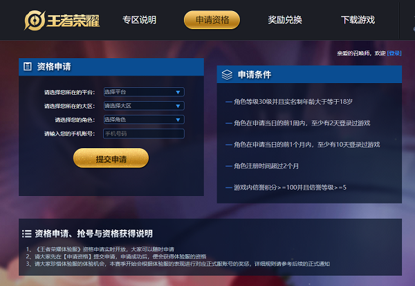 并且QQ帐号或微信账号拥有《王者荣耀体验服》的荣耀资格才行 。